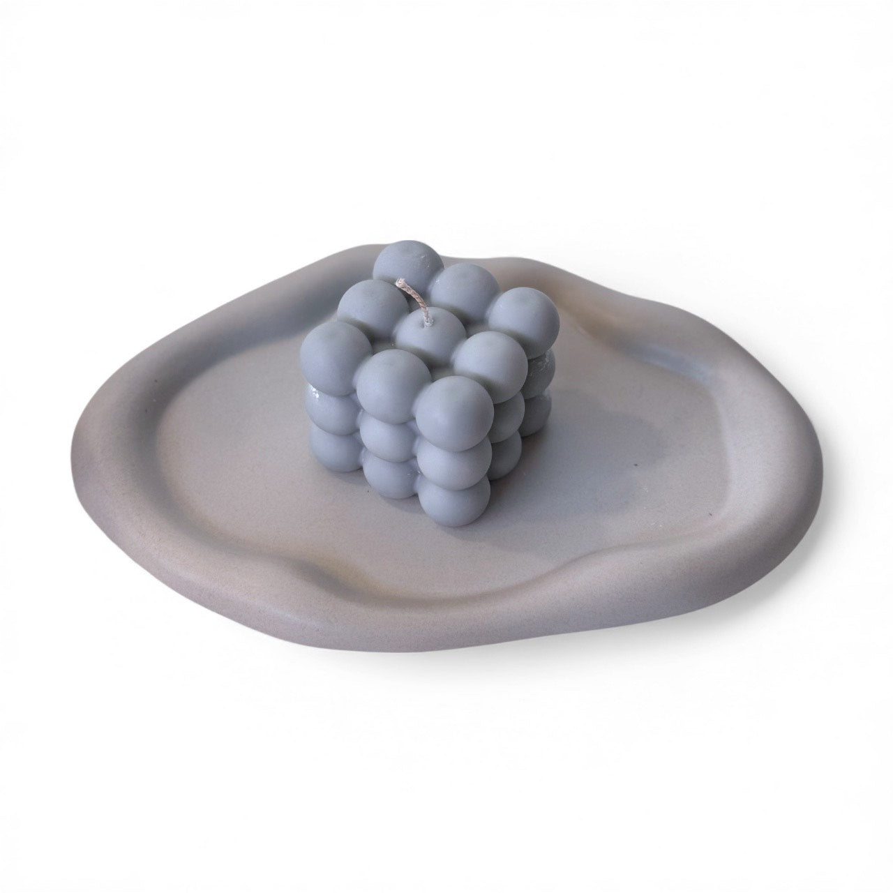 Exclusive wave διακοσμητικός δίσκος 100% χειροποίητος της Moonwalk Candles με αρωματικό κερί σόγιας σε σχήμα bubble.Σύγχρονο και εντυπωσιακό: το σετ με το γκρι Bubble Candle και την χειροποίητη κεραμική του βάση είναι η τέλεια επιλογή για όσους αγαπούν τον μοντέρνο σχεδιασμό και τη διακριτική πολυτέλεια.