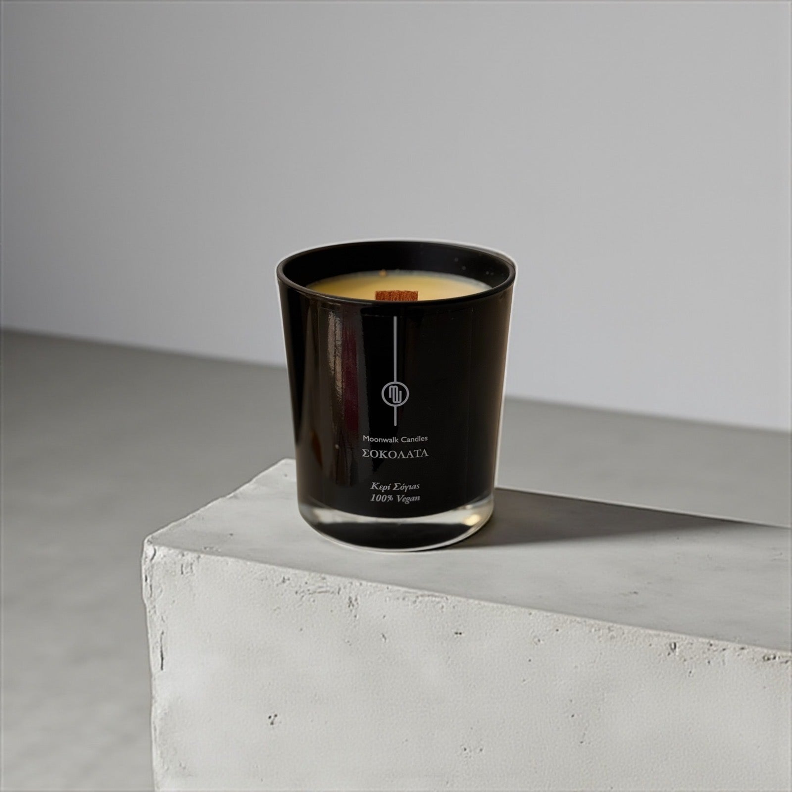 Ένα εντυπωσιακό γυάλινο δοχείο σε βαθύ μαύρο, σχεδιασμένο για να αποπνέει μυστήριο και πολυτέλεια. Η γυαλιστερή του επιφάνεια σε συνδυασμό με το minimal logo δημιουργεί μια αίσθηση διαχρονικής φινέτσας, ενώ η φλόγα του κεριού αντανακλά διακριτικά μέσα στο σκούρο γυαλί, χαρίζοντας ατμόσφαιρα που μαγνητίζει.